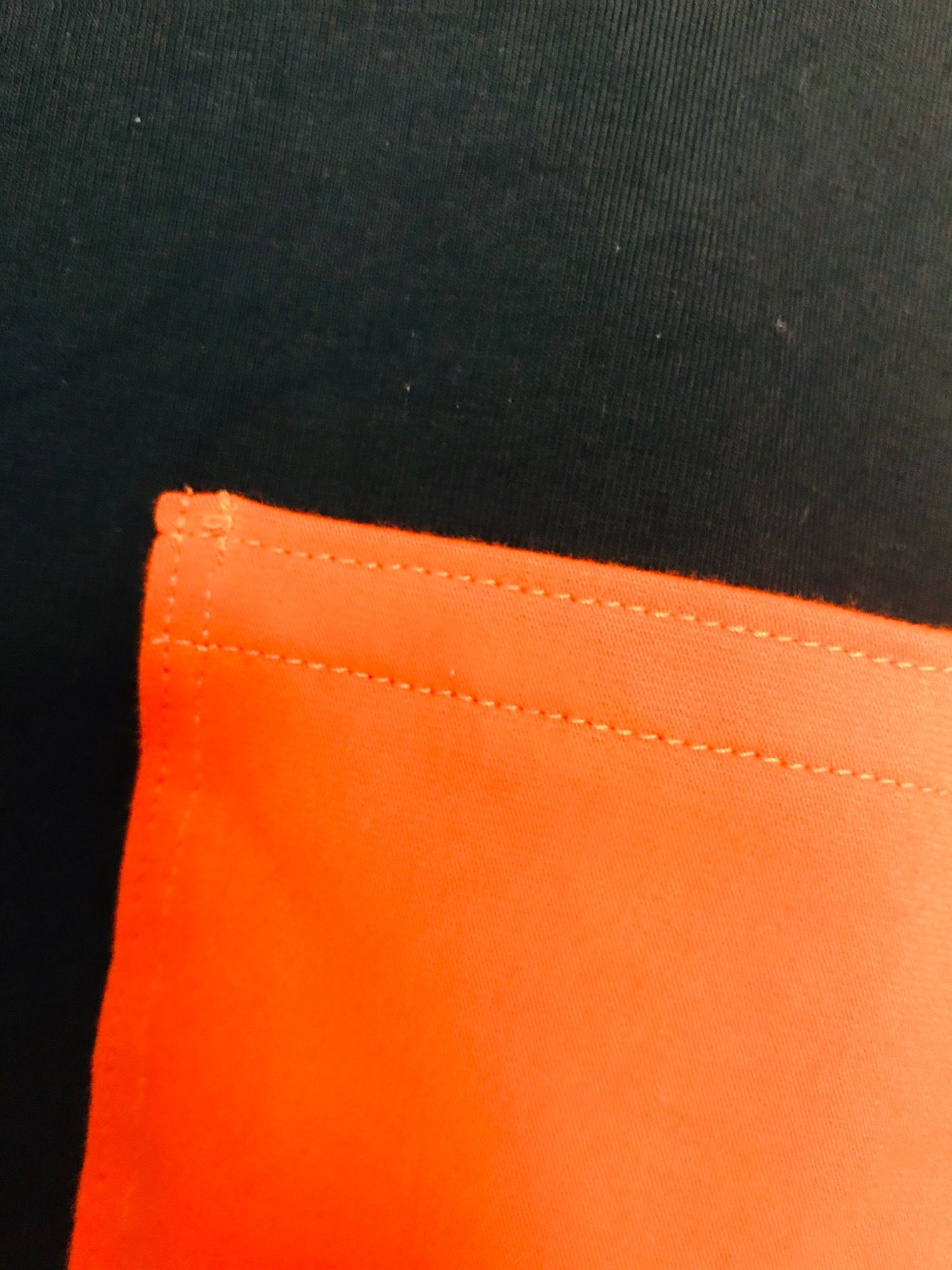 Lässiges dunkelblaues Herrenshirt mit aufgesetzter Tasche in Komplementärfarbe Orange